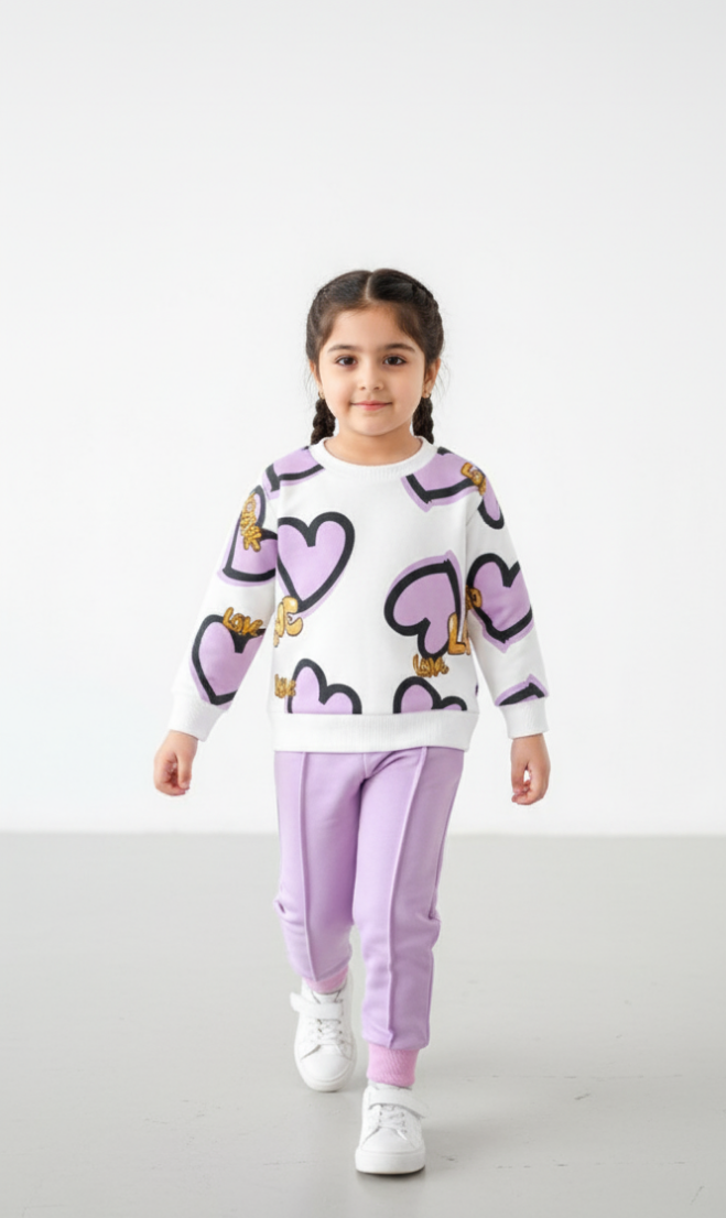 Keep your little princess cozy, stylish, and comfortable all day with our Kid Girl Purple Heart Tracksuit. Made from premium cotton fleece, this set is perfect for chilly days, playtime, or casual outings. The soft fabric feels gentle on the skin, while the chic purple color with heart design adds a touch of cuteness every girl will love.